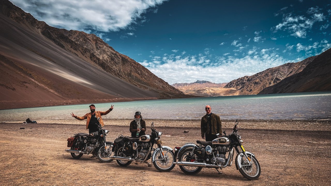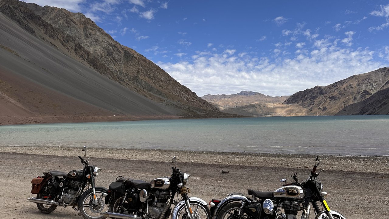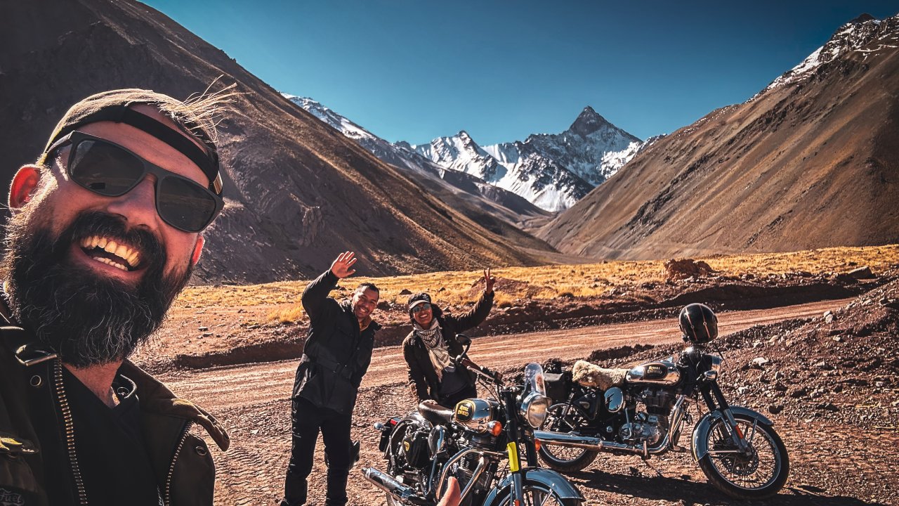 Just an hour outside Santiago, the road opens into Cajón del Maipo — a dramatic canyon where the Andes show off their wild side. Think rushing rivers, hidden waterfalls, wide valleys, towering peaks, and the crisp mountain air that makes every twist of the throttle feel alive. We’ll saddle up on our Royal Enfield Classic 500s — vintage-style machines that were built for roads like these. From smooth tarmac to winding gravel tracks, they handle it all with style, turning the ride itself into half the adventure. Along the way, we’ll fuel up like real riders do — stopping for breakfast in a local biker bar that has become a legend among Santiago’s motorheads. Out in the high Andes, we’ll spread out a picnic with local flavors, surrounded by epic mountain views that make you forget the rest of the world even exists. On the way back, there’s one last treat: a stop at Chile’s most famous chocolate maker. The perfect sweet ending to a day packed with pure riding fun, mountain legends, and the unbeatable freedom of exploring the Andes on two wheels.
